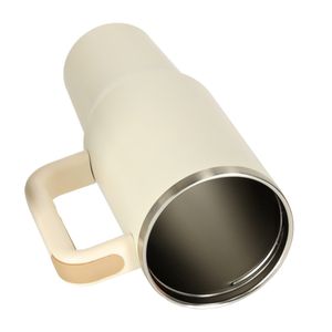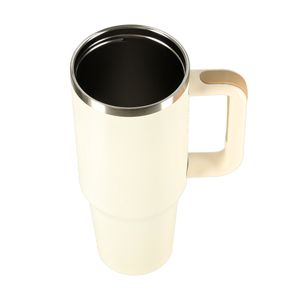 Stalowy kubek termiczny 1,2 L w kolorze kremowym. Wyposażony w uchwyt, słomkę i podwójną izolację, utrzymuje temperaturę napojów przez wiele godzin.