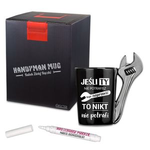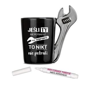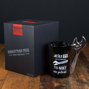 Kubek z napisem motywacyjnym i uchwytem w kształcie klucza. Idealny prezent dla męża, taty czy każdego faceta – prawdziwej Złotej Rączki. 🔧☕
