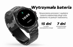 Dzięki klasie wodoszczelności IP68 smartwatch jest odporny na deszcz, pot i zachlapania. Wydajna bateria 250 mAh zapewnia do 5 dni pracy i do 10 dni w trybie czuwania.