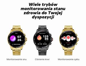 Zegarek oferuje pomiar tętna, stresu, natlenienia krwi, ciśnienia oraz monitor snu. Posiada tryby sportowe, krokomierz i przypomnienia o aktywności, co czyni go idealnym towarzyszem codziennych treningów.
