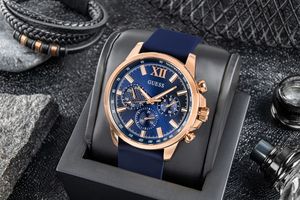 Zegarek dostarczany jest w oryginalnym pudełku GUESS z poduszką, kartą gwarancyjną i instrukcją obsługi – idealny jako prezent dla wyjątkowego mężczyzny.